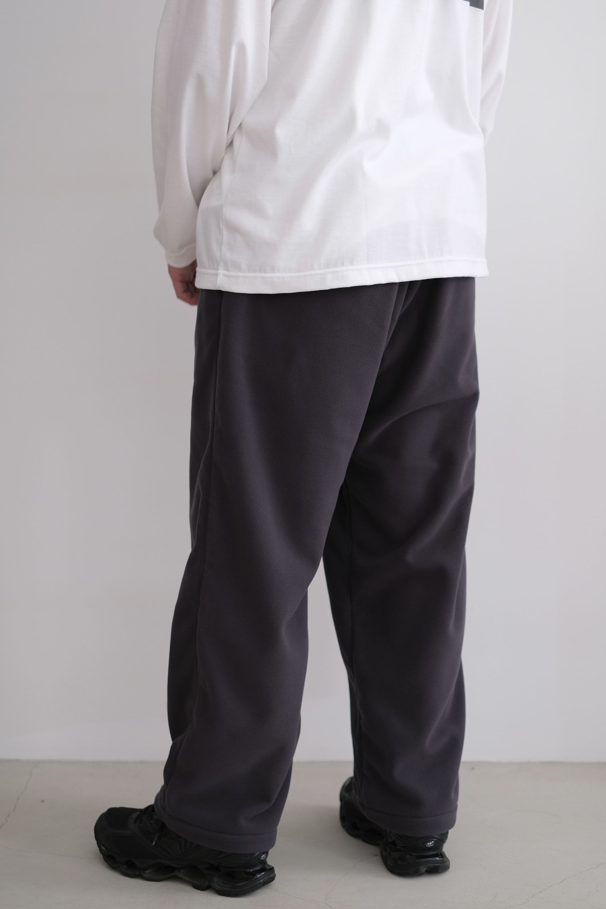 風を通さず防寒機能を進化させた毛足の短いフリース素材POLARTEC"WIND PRO"を採用。透湿性を維持した高密度のニット構造フリースは、寒さや強風から身を守るのに優れアクティブシーンにおいても活躍します。肌触りが良く、滑らかさで短い毛足は毛玉になりにくく、ゴミの付着も少ないので繰り返しの着用に優れています。イージーパンツ仕様でウエストはゴムと紐で安定感があります。落ち感が良いストンとしたリラックスシルエットは、裾のドローコードを絞って裾幅の調整が可能。スウェットパンツを履くような感覚でラフに楽しんでいただきたいアイテムです。