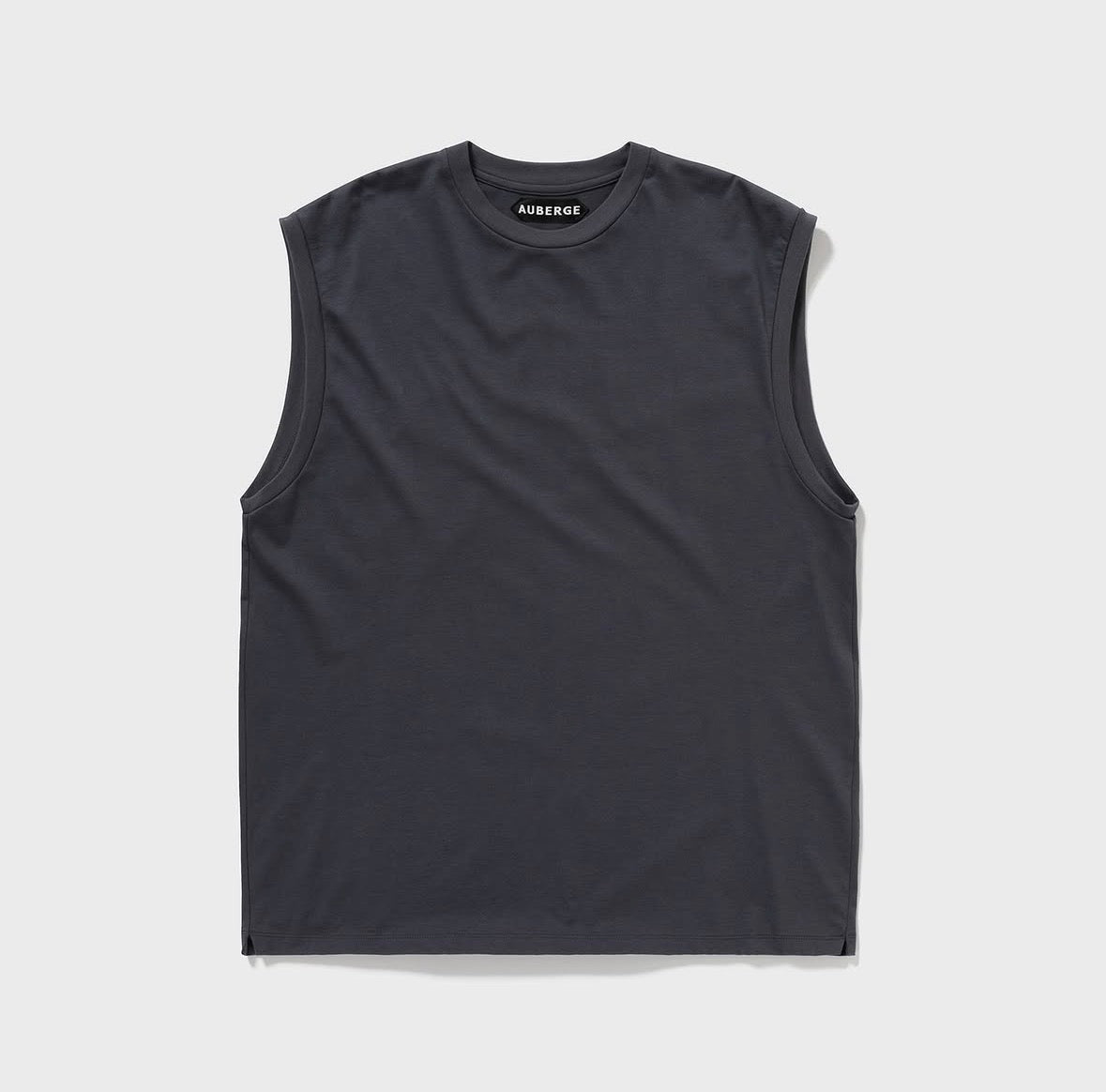 超繊細な115カウントのスヴィンコットン糸で製作されたノースリーブ。落とした肩幅と身幅のバランスが絶妙で、快適でゆったりとしたフィットに仕上がっております。