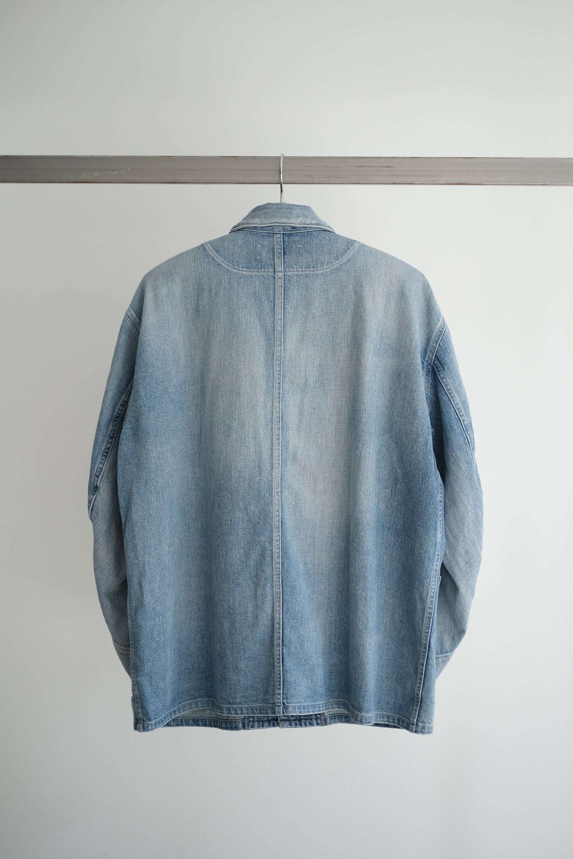 ムラ糸を使い、経と横の糸の太さを変えることでミドルオンスでありながらフラットにならず奥行のある表情に仕上がり。世界でも指折りの加工技術を持つ児島の職人により1点づつ加工を加えています。
