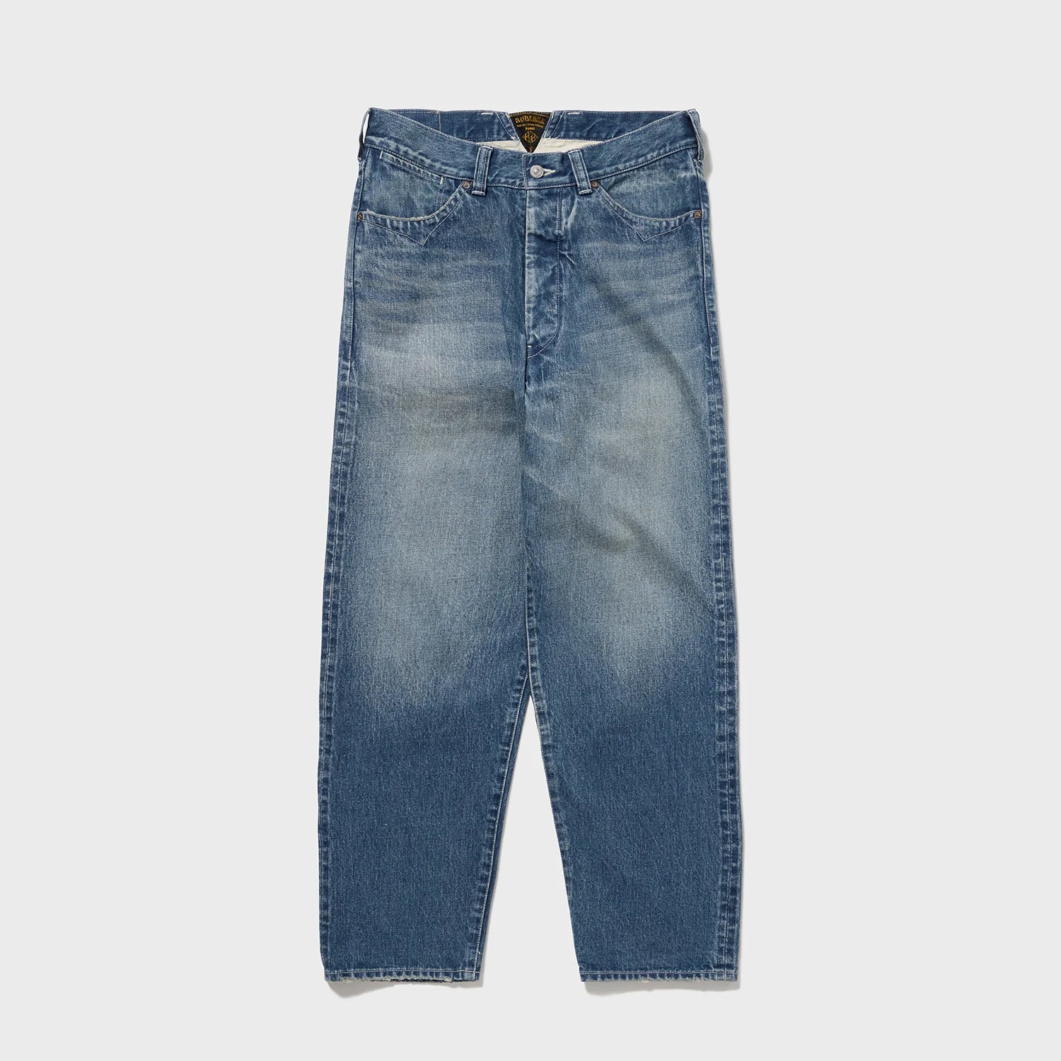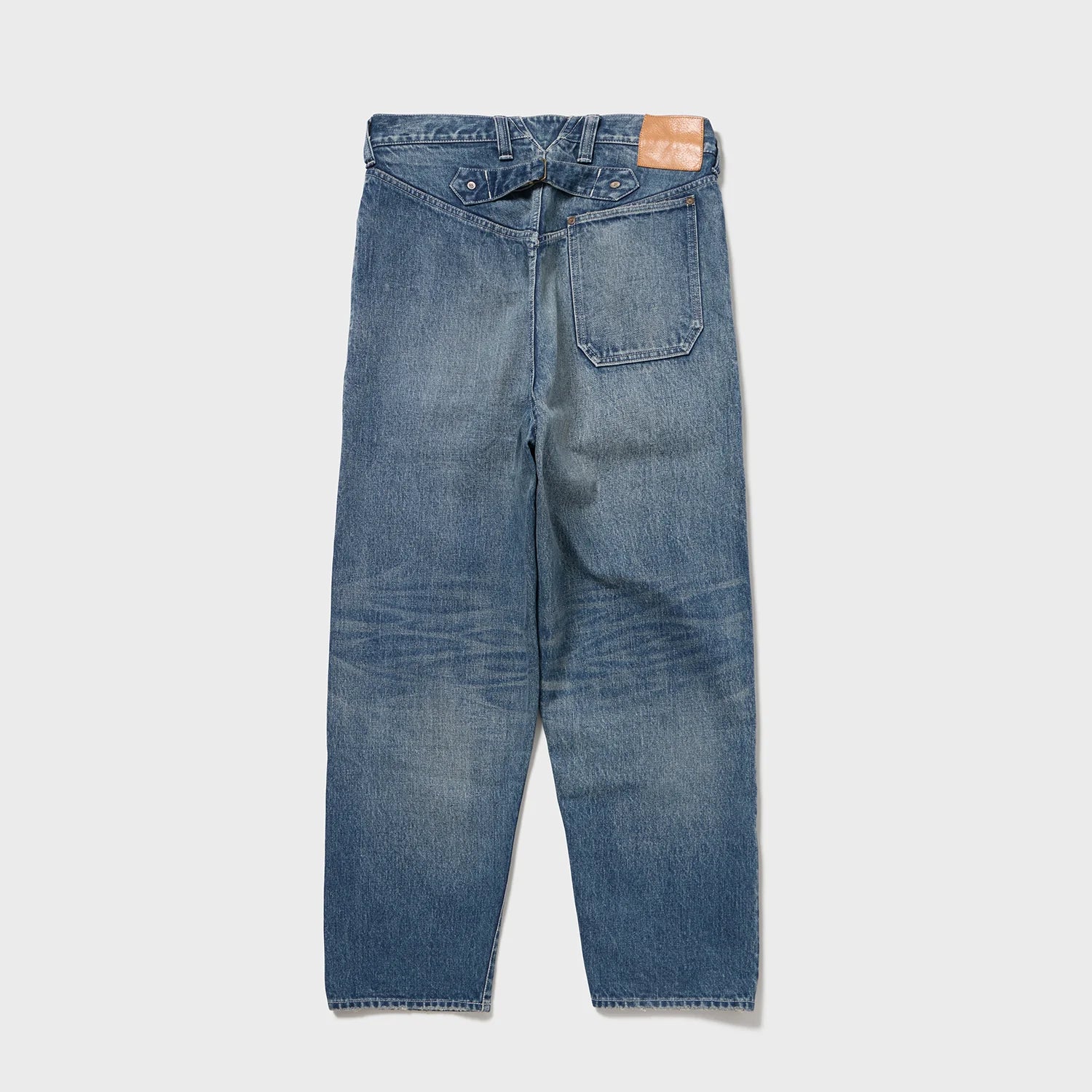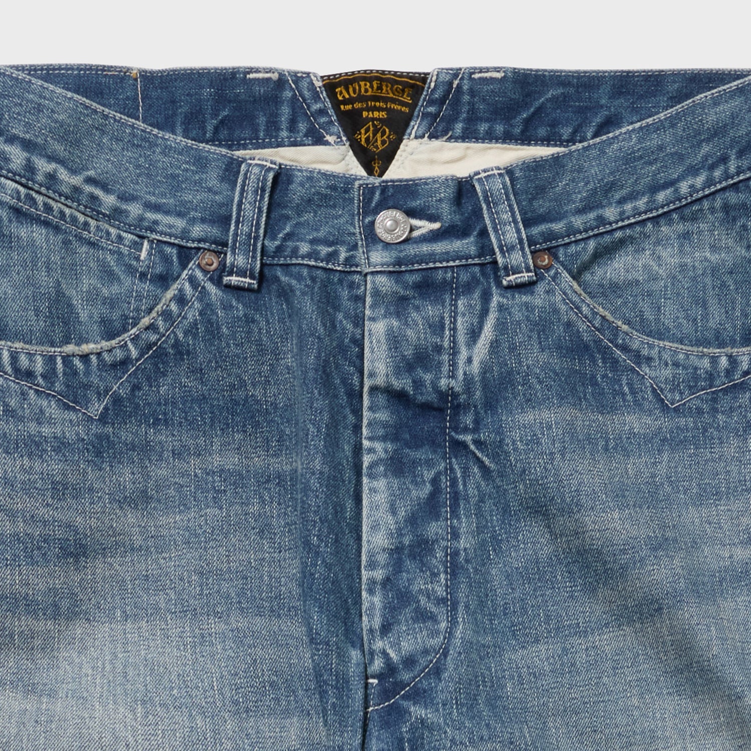 ベルジャルディ二エール社製のパンツをアレンジしたAUBERGE定番のフレンチワークパンツ。このシルエットとアメカジ感の強いデニムの組み合わせはコーディネイトの中に意外性をもたらします。