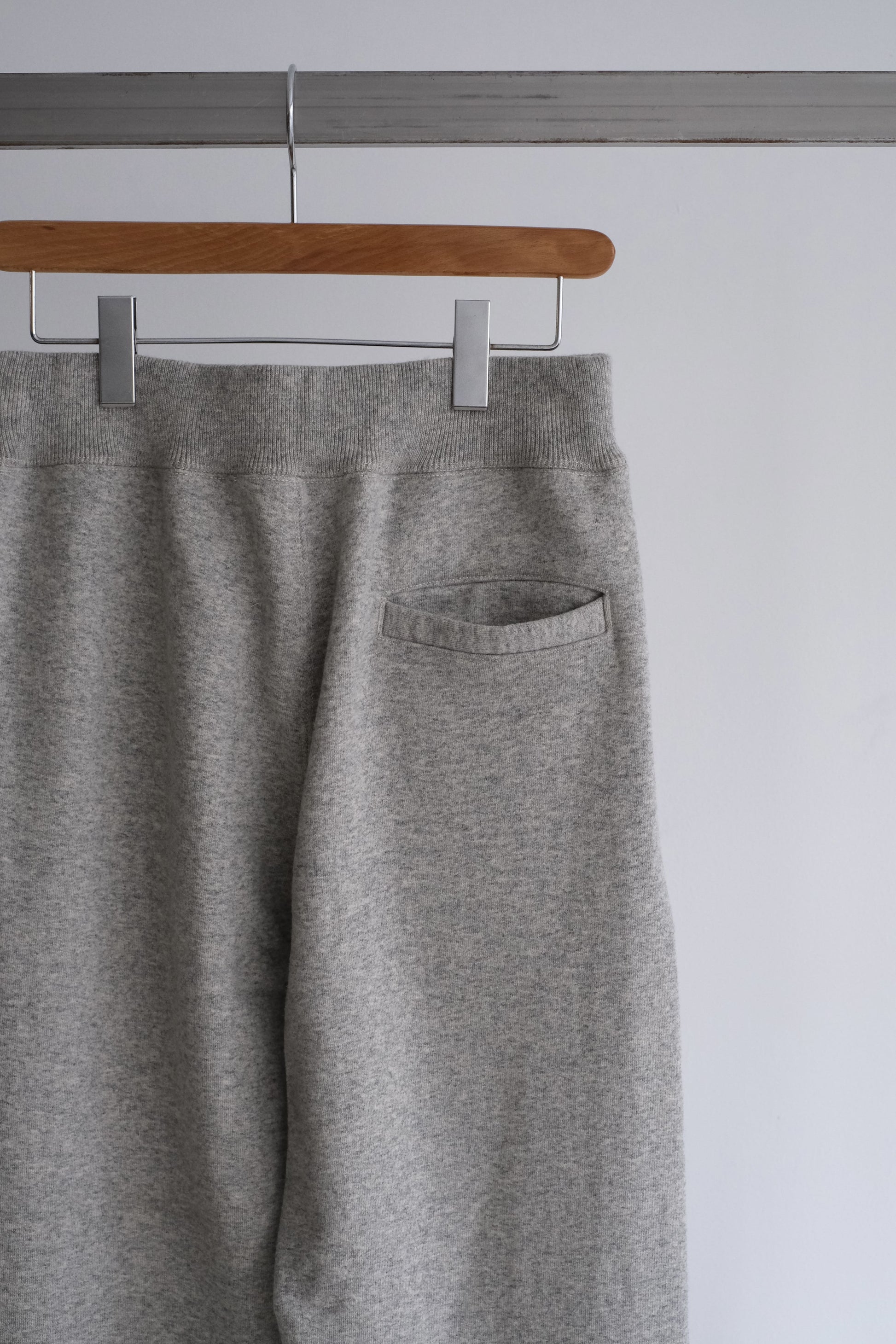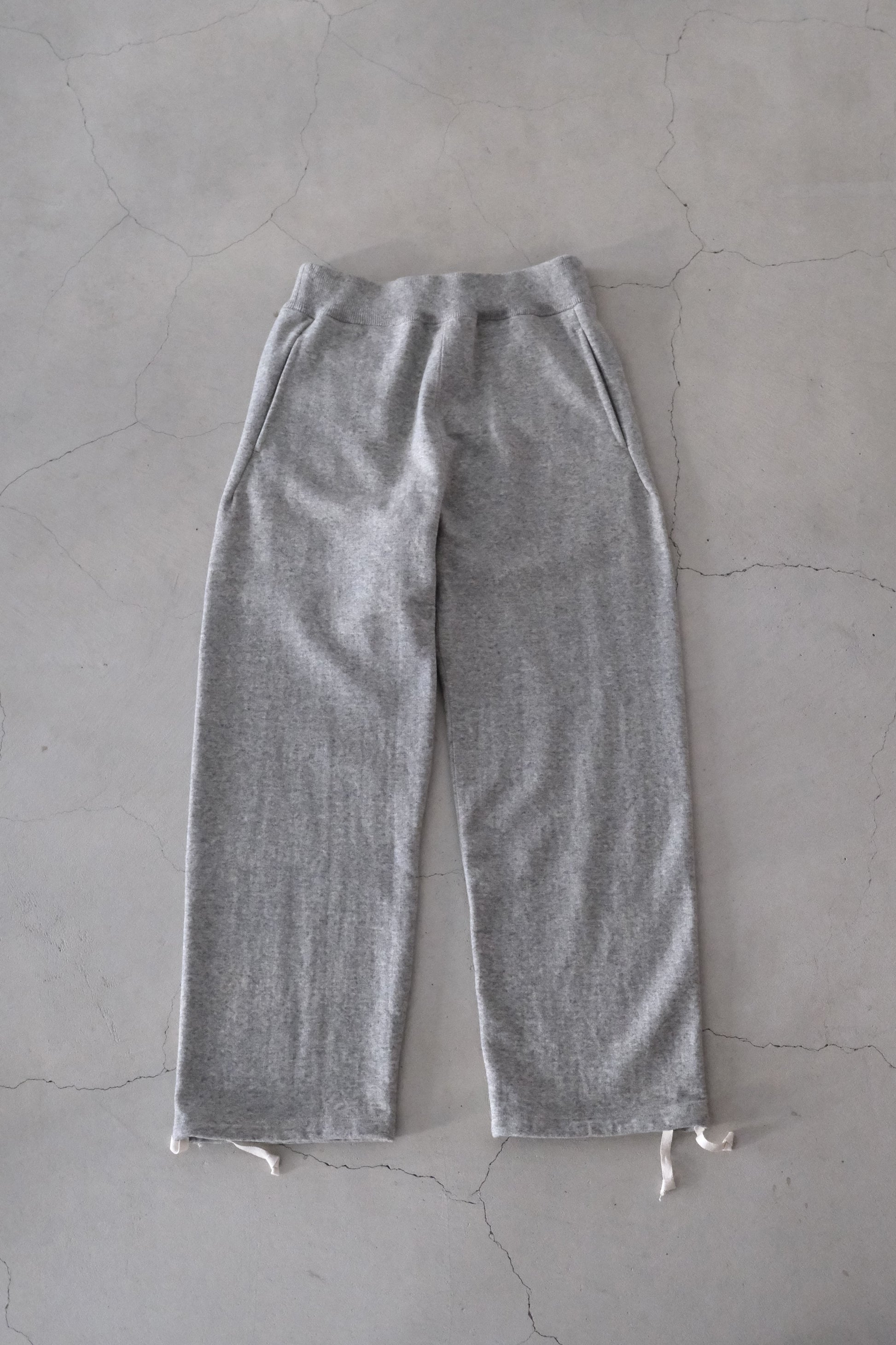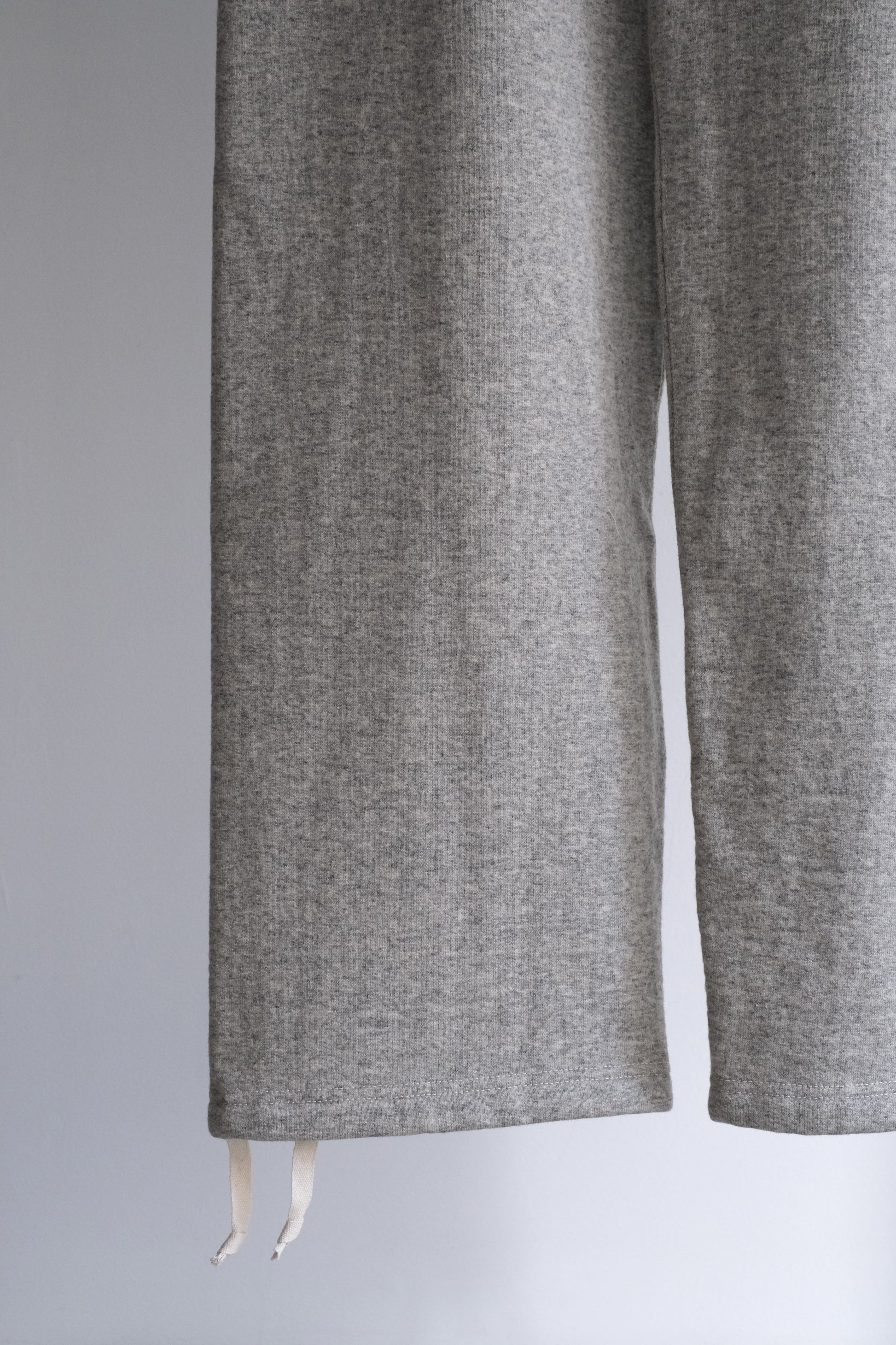 ヴィンテージのトラックパンツのイメージで、股下にマチを入れたパターン。フラットでイージーなパターンのヴィンテージのパンツとは違い、しっかりとした生地の肉感を考慮して、体の動き分量を考えた前後差のあるパターンで制作している。動きやすく、暖かく、外着としてサマになる優れもの。