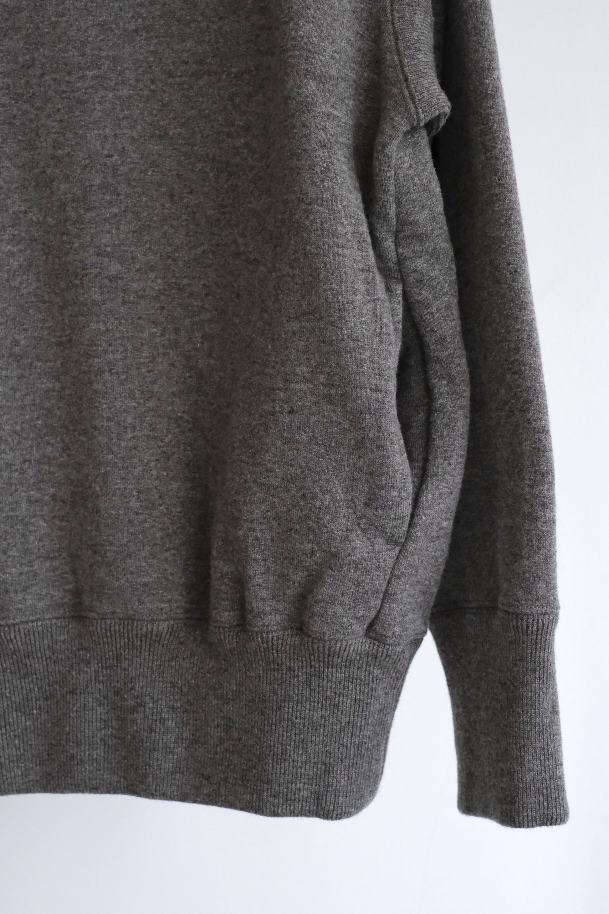 ヴィンテージのモックタートルのスウェットをイメージして制作された1着。編み立てを生かし衿のみ編み組織を変えたリブで、セーターのようなニュアンスに仕上げられています。機能性と着易さの為に、脇下にはマチを入れ、ポケットは少し前に脇線を振って手を入れやすくしております。